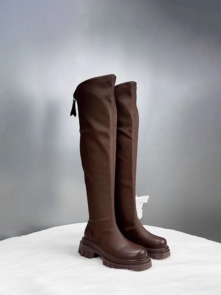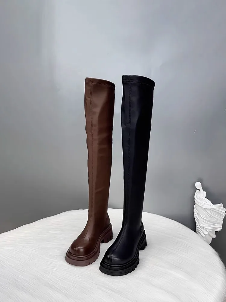Den rejäla platåsulan ger inte bara extra höjd utan också en bekväm och stabil grund, perfekt för långa dagar eller nätter ute. Den knähöga designen skapar en smickrande silhuett och gör stövlarna till ett självklart val för höst- och vintersäsongen.