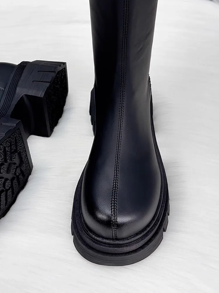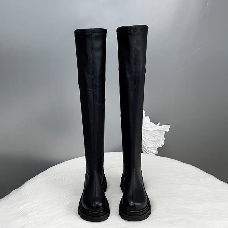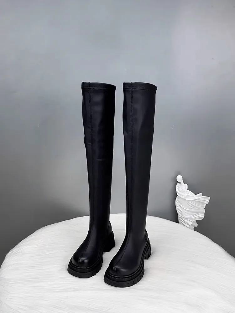Knähöga platåstövlar, dam, chunky Goth vinterstövlar