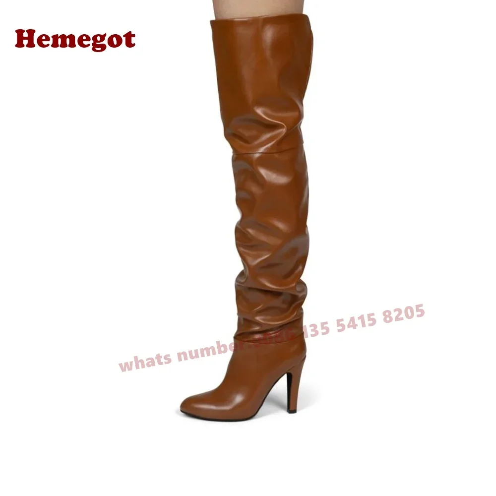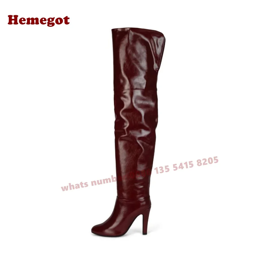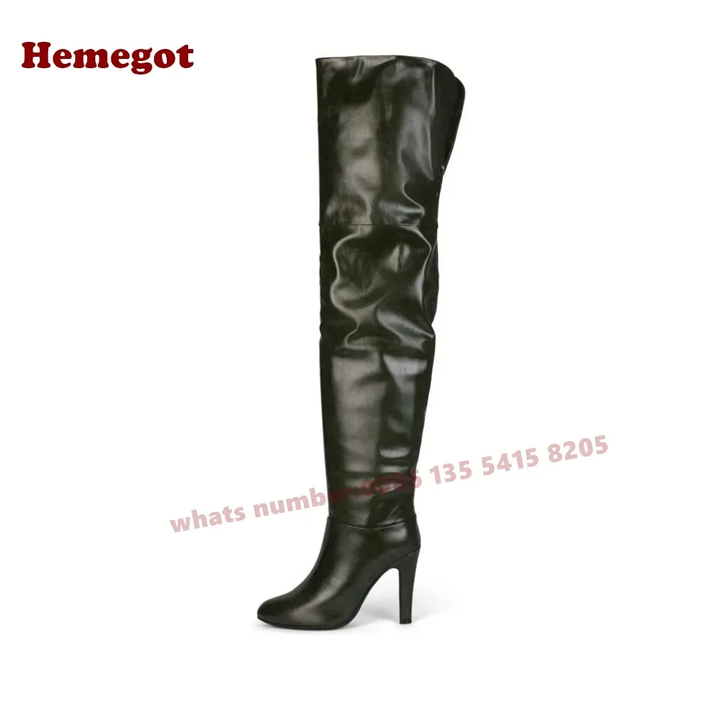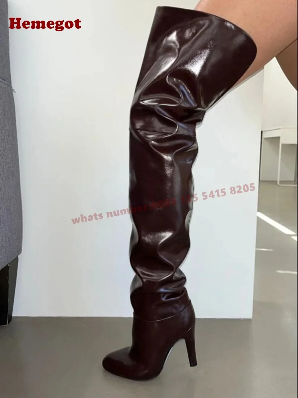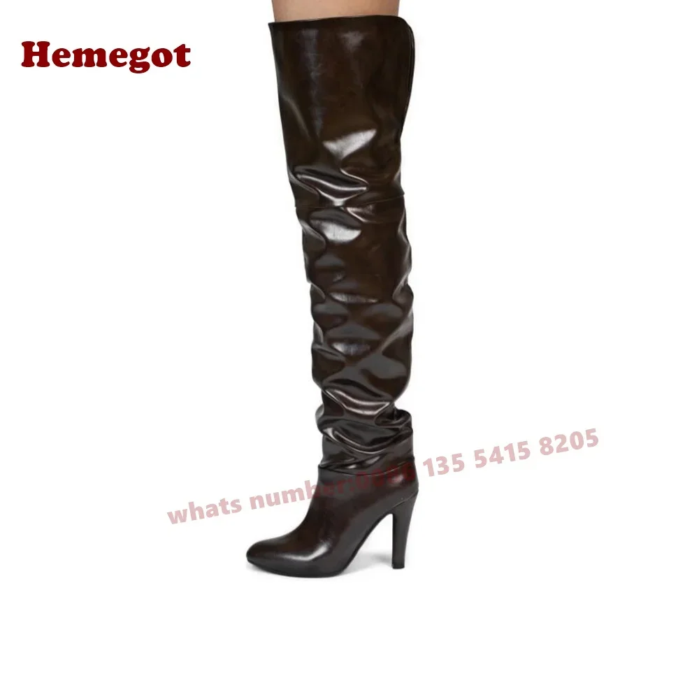 Stövlarna har en iögonfallande glansig finish som omedelbart drar blickarna till sig. Den veckade, eller "slouchy", designen längs skaftet ger stöveln en avslappnad men ändå lyxig karaktär. Med en hög, smal stilettklack ger de en fantastisk siluett och förlänger benen på ett smickrande sätt.